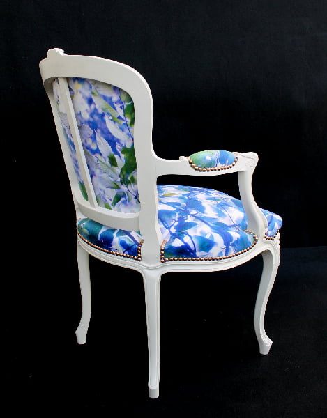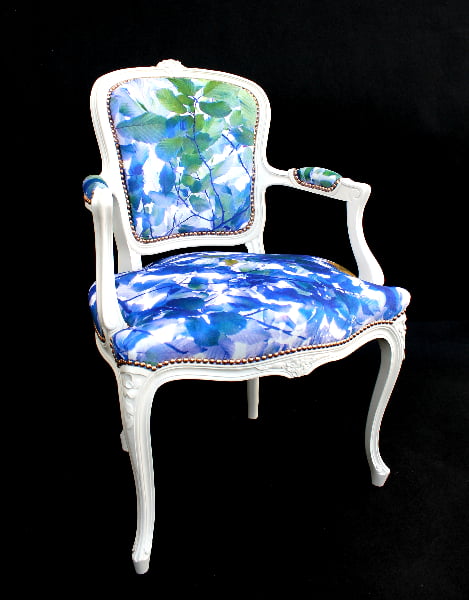 Le fauteuil Louis XV – Bleutée sera exposé du 25 mai au 1er juin 2025 à la Maison du Pilier Rouge, au Mans.